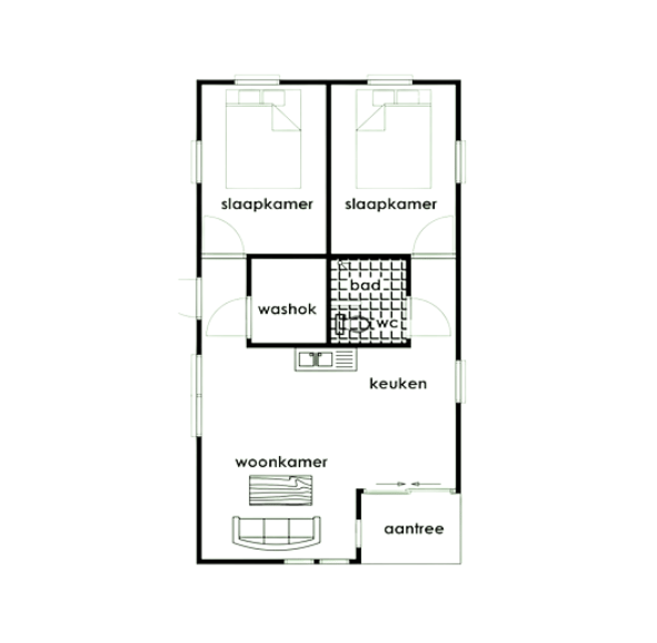 - Sliding windows: clear glass (3 (0.40 * 2.00) / 5 (0.90 * 1.20) / 1 (1.80 * 1.20)