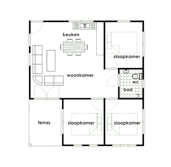 - Sliding windows: clear glass (4 (0.40 * 2.00) / 3 (0.90 * 1.20) / 4 (1.80 * 1.20) / 1 (0.65 * 0.40)