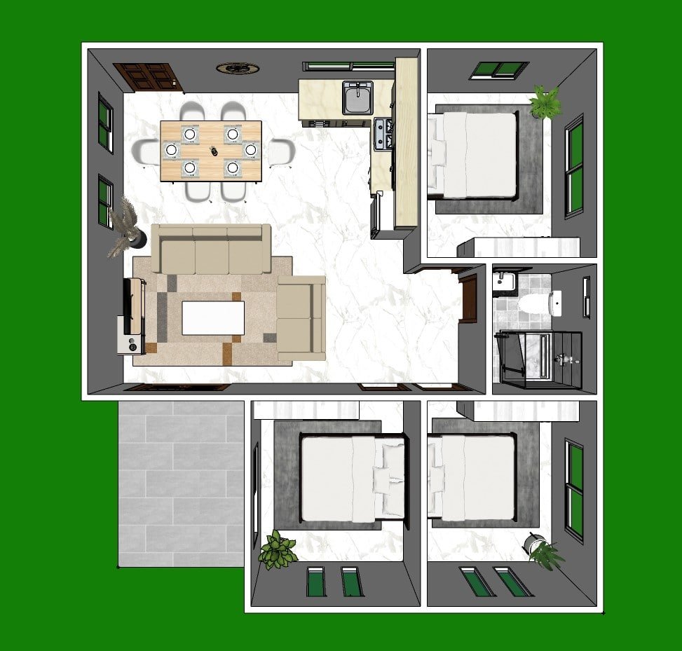 This beautiful one-bedroom home is constructed with durable 4" concrete blocks and features elegant PVC panel ceilings. The bathroom and toilet areas are tiled to a height of 1.80 meters, providing a sleek and modern finish. Complete with solid wood exterior doors and foreign model interior doors, the house is designed for both security and style. Clear glass sliding windows in various sizes allow natural light to flood the interior. The kitchen unit is 1.50 meters long, providing ample space for cooking. The entire living area is fully tiled, ensuring a polished look throughout.
