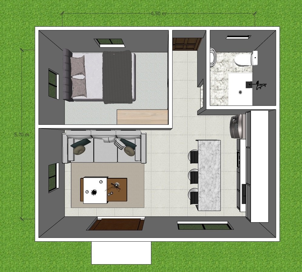 This beautiful one-bedroom home is constructed with durable 4" concrete blocks and features elegant PVC panel ceilings. The bathroom and toilet areas are tiled to a height of 1.80 meters, providing a sleek and modern finish. Complete with solid wood exterior doors and foreign model interior doors, the house is designed for both security and style. Clear glass sliding windows in various sizes allow natural light to flood the interior. The kitchen unit is 1.50 meters long, providing ample space for cooking. The entire living area is fully tiled, ensuring a polished look throughout.