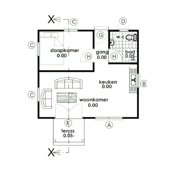 - Sliding windows: clear glass (1 (1.80 * 1.20) / 3 (1.20 * 1.20) / 1 (0.65 * 0.40) / 1 (1.80 * 0.80))